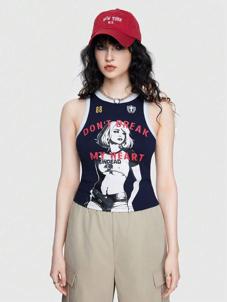 Street Life Women's Tank Top For Summer With Character Or Letter Print