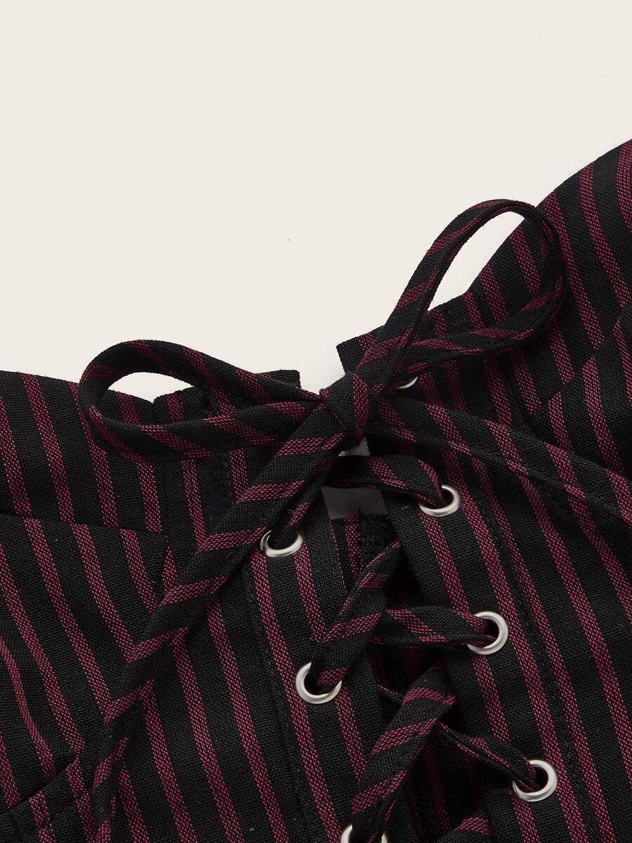 Striped Lace Up Front Ruffle Hem Cami Dress