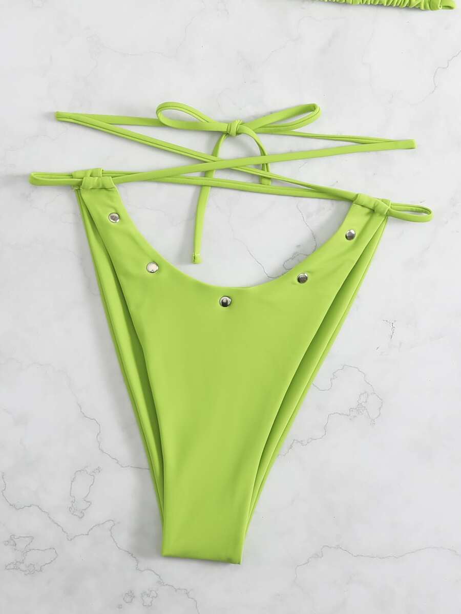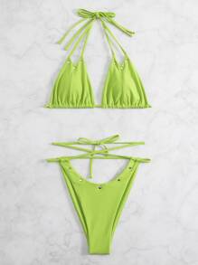 Studded Detail Triangle High Cut Summer Beach Bikini Set