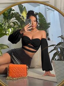 Summer Sexy Off Shoulder Twist Front Cut Out Crop Top