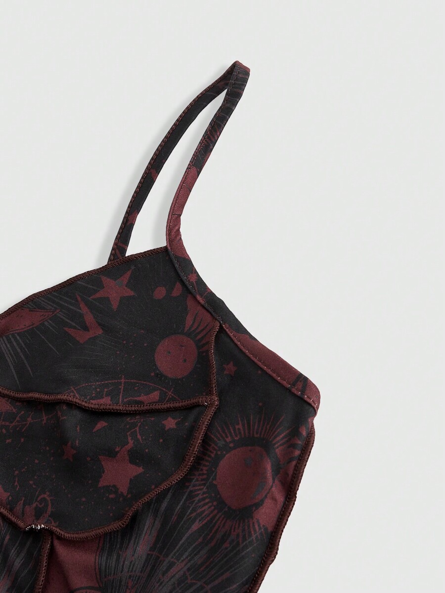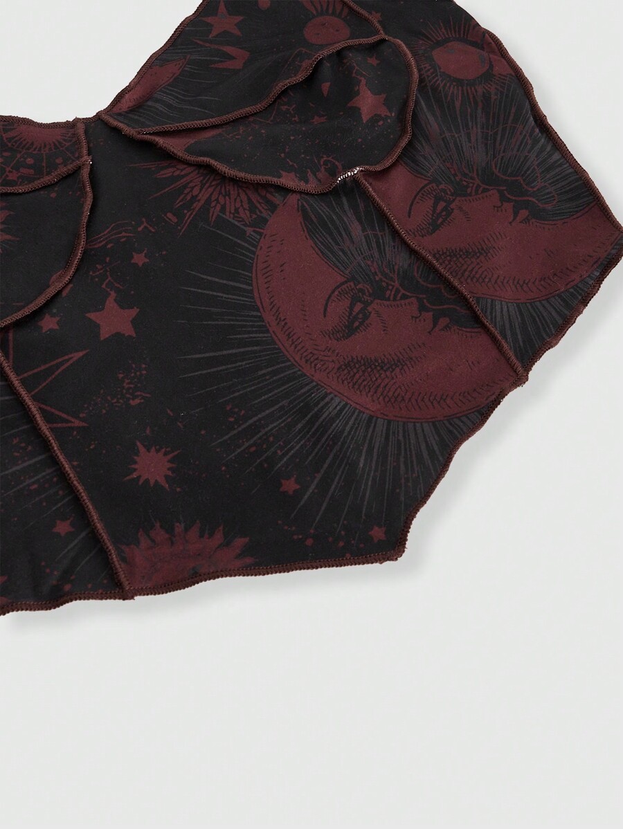 Sun Moon Star Print Asymmetrical Hem Sleeveless Top