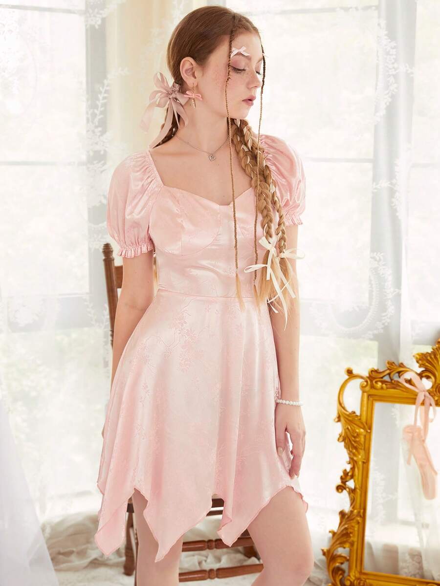 Sweetheart Neck Puff Sleeve Asymmetrical Hem Dress