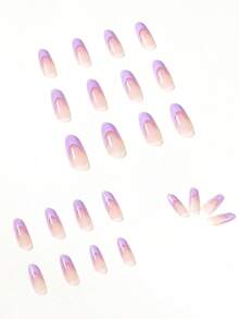 Sweetness 1box 24pcs Purple French Style False Nails, For Nail Art