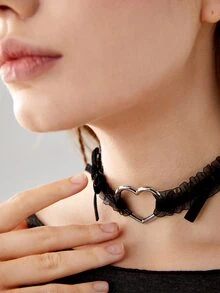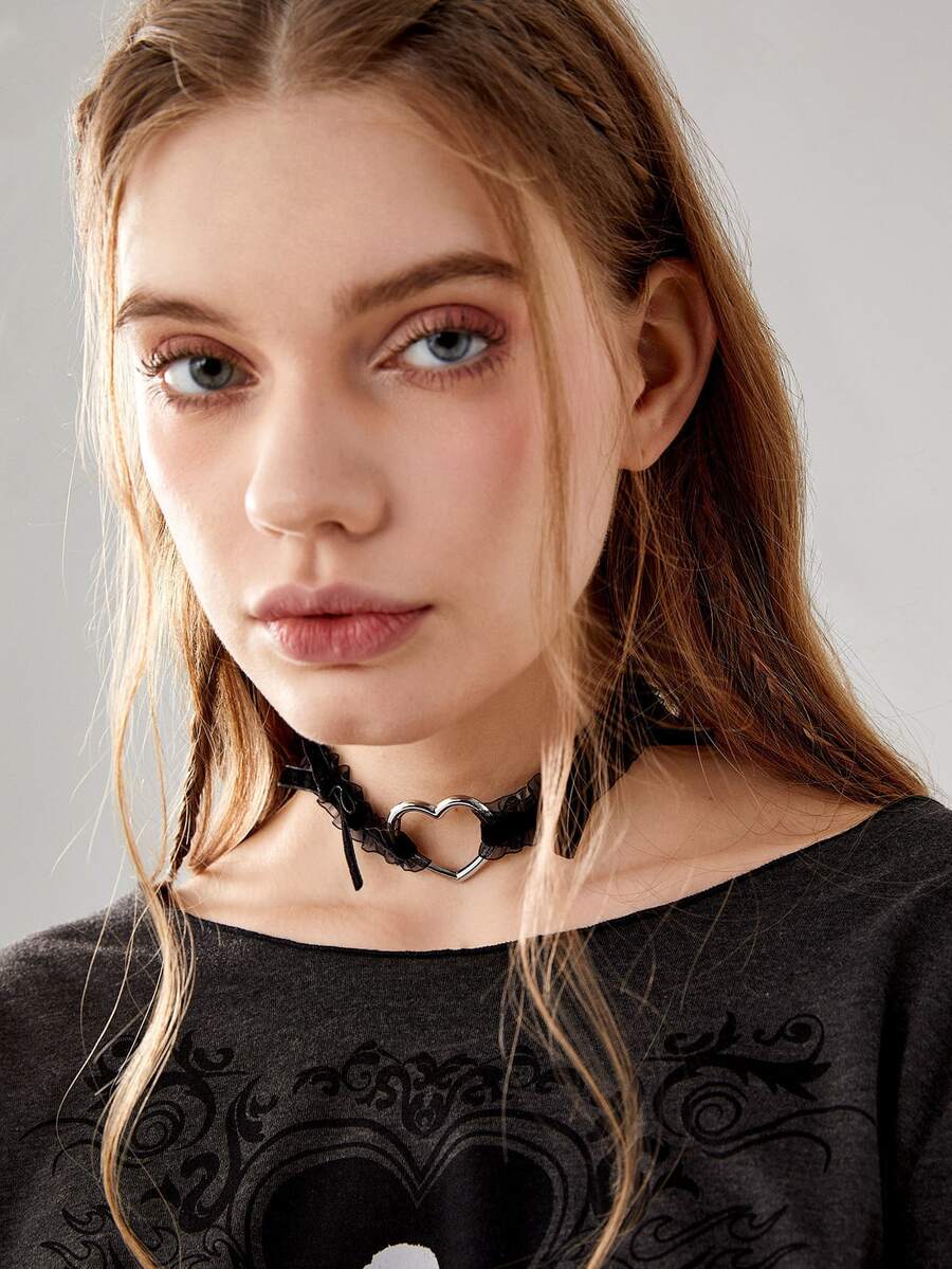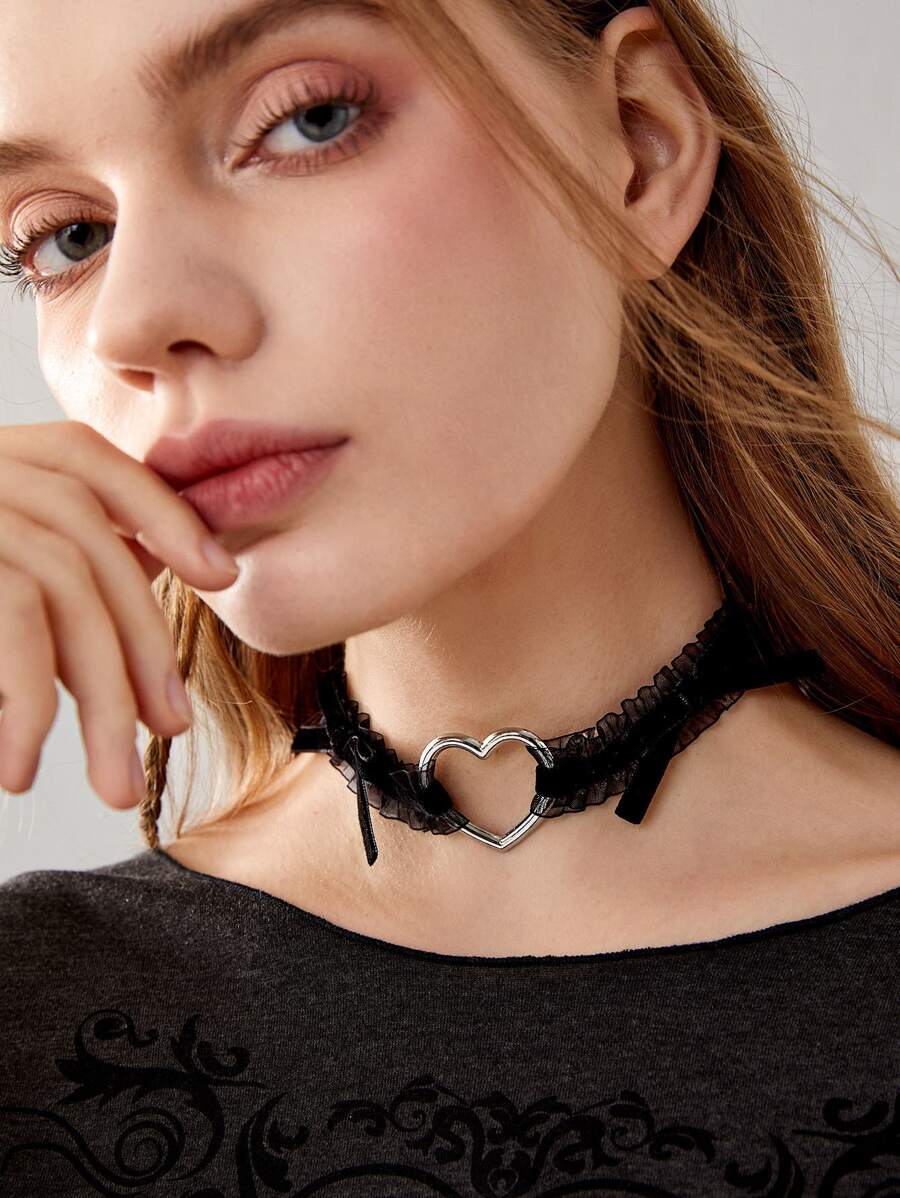 Sweetness 1pc Fashionable Metallic Heart Black Choker For Women For Daily Decoration