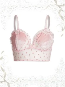 Sweetness Heart Print Frill Trim Mesh Cami Top