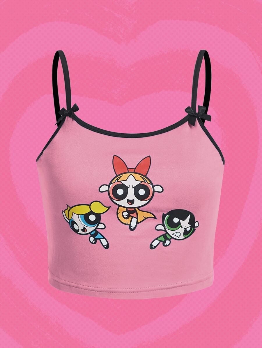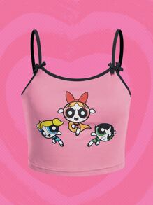 The Powerpuff Girls | ROMWE Cartoon Graphic Contrast Binding Bow Decor Cami Top