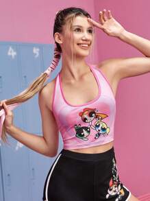 The Powerpuff Girls | ROMWE Cartoon Graphic Contrast Binding Halter Top