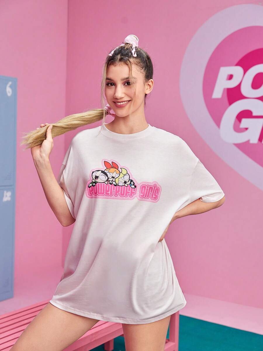 The Powerpuff Girls | ROMWE Cartoon Graphic Drop Shoulder Oversized Tee