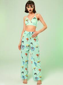 The Powerpuff Girls | ROMWE Cartoon Graphic Knot Pyjama Set