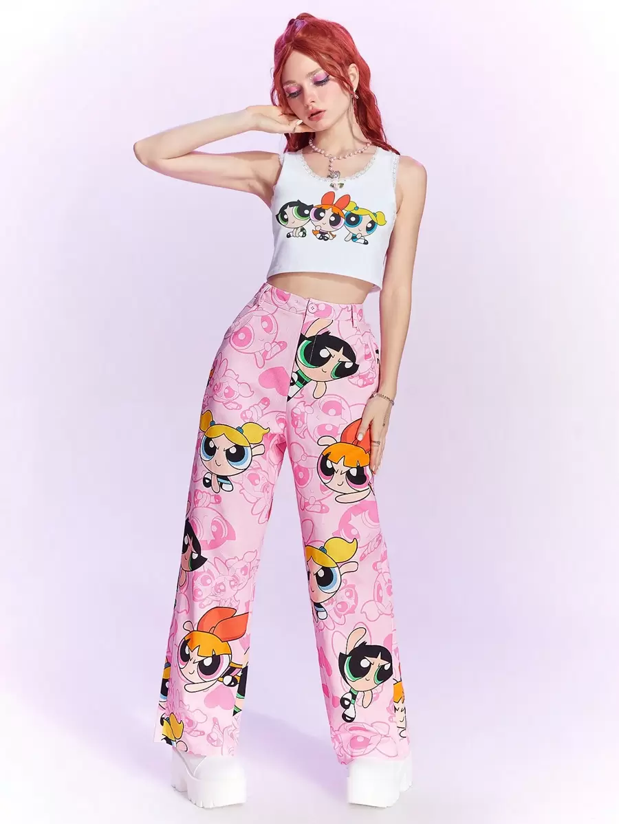 The Powerpuff Girls | ROMWE Cartoon Graphic Straight Leg Pants