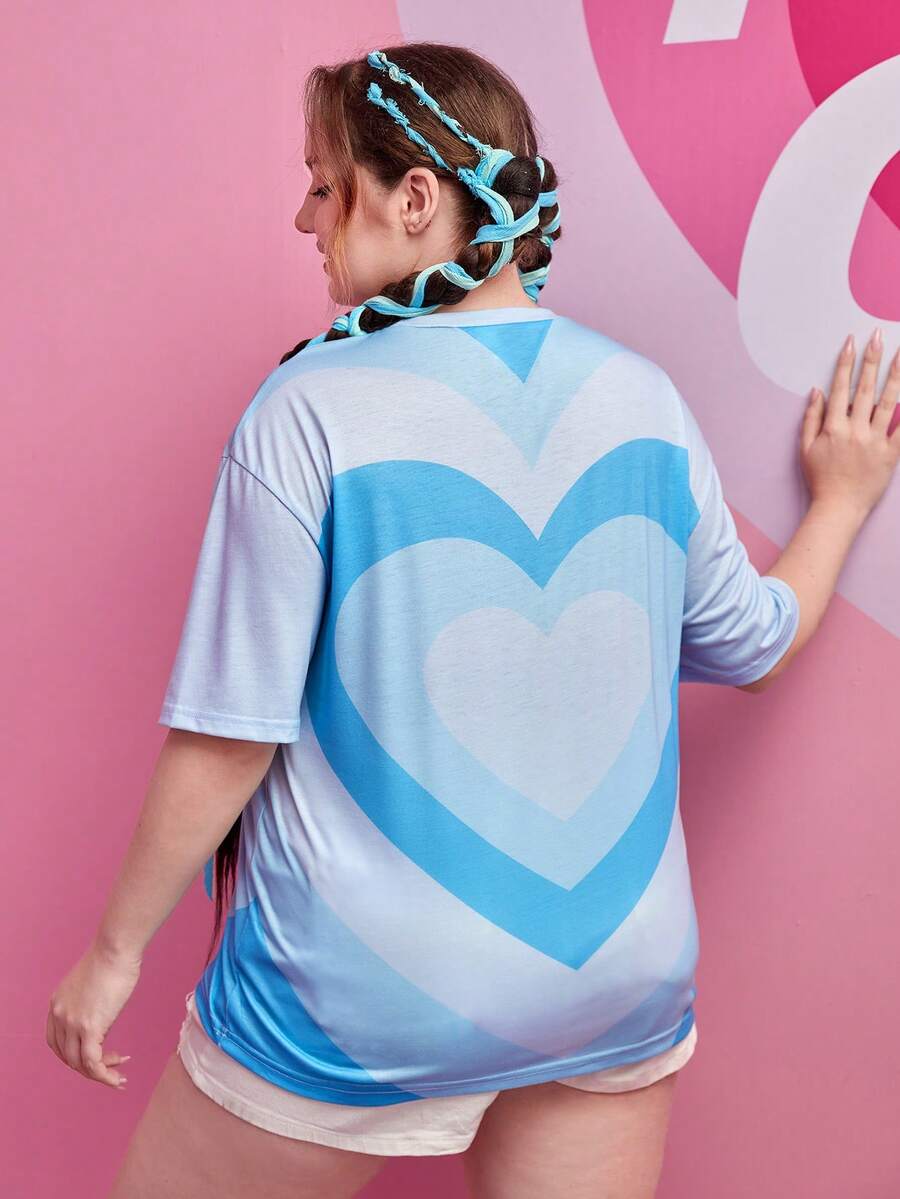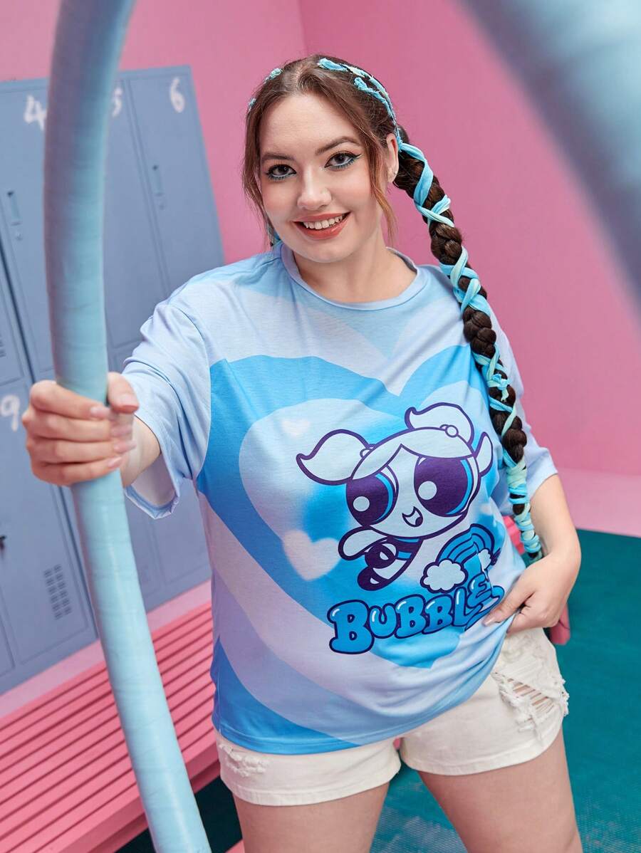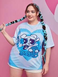 The Powerpuff Girls | ROMWE Plus Heart Cartoon & Letter Graphic Drop Shoulder Tee