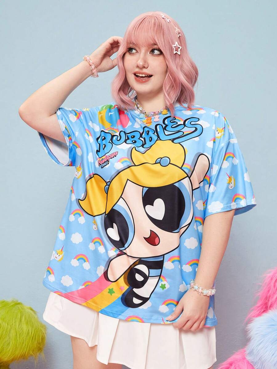 The Powerpuff Girls | ROMWE Plus Loose Fit Cartoon Print Drop Shoulder T-Shirt