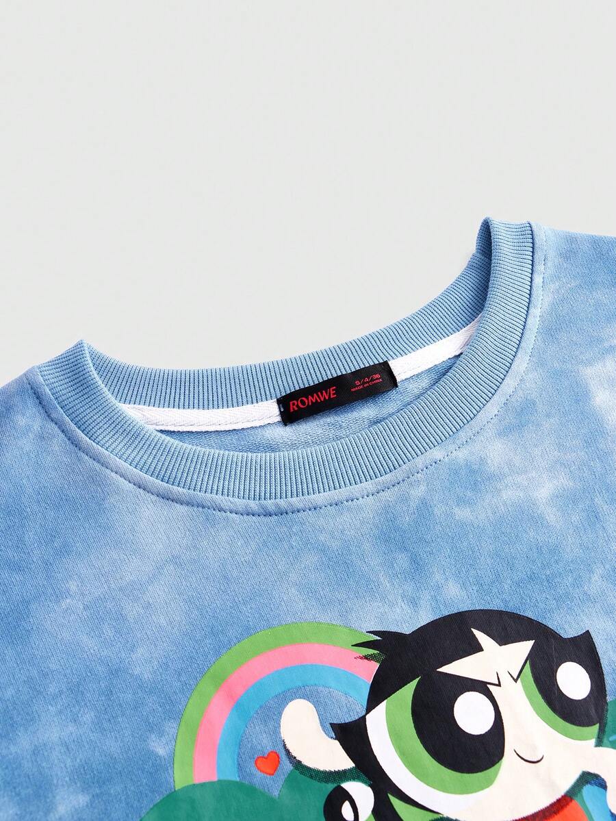 The Powerpuff Girls | ROMWE Tie Dye Cartoon Graphic Crop Sweatshirt