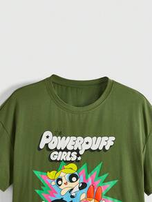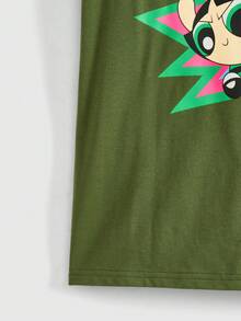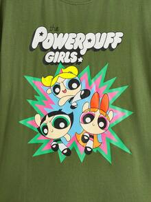 The Powerpuff Girls | ROMWE Women's Short Sleeve T-shirt With Letter And Cartoon Pattern