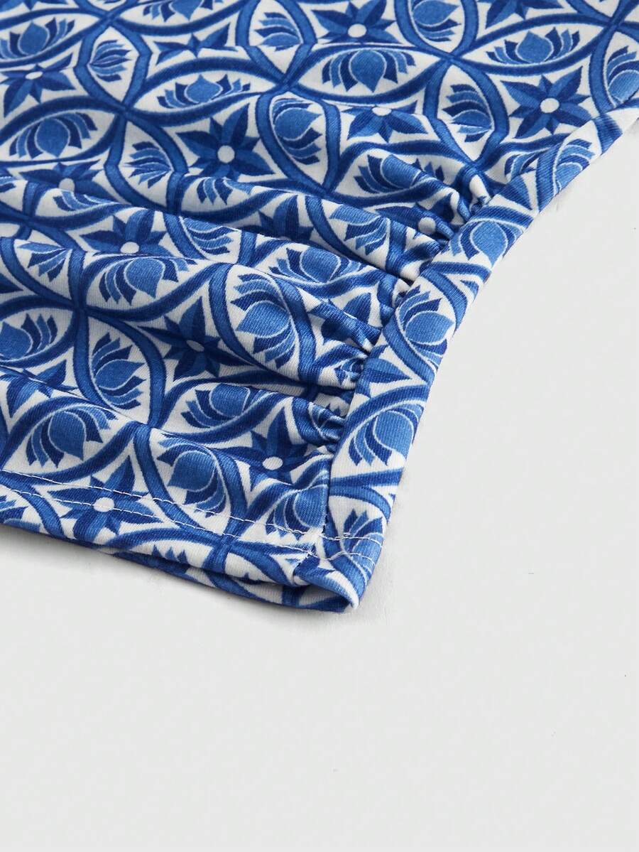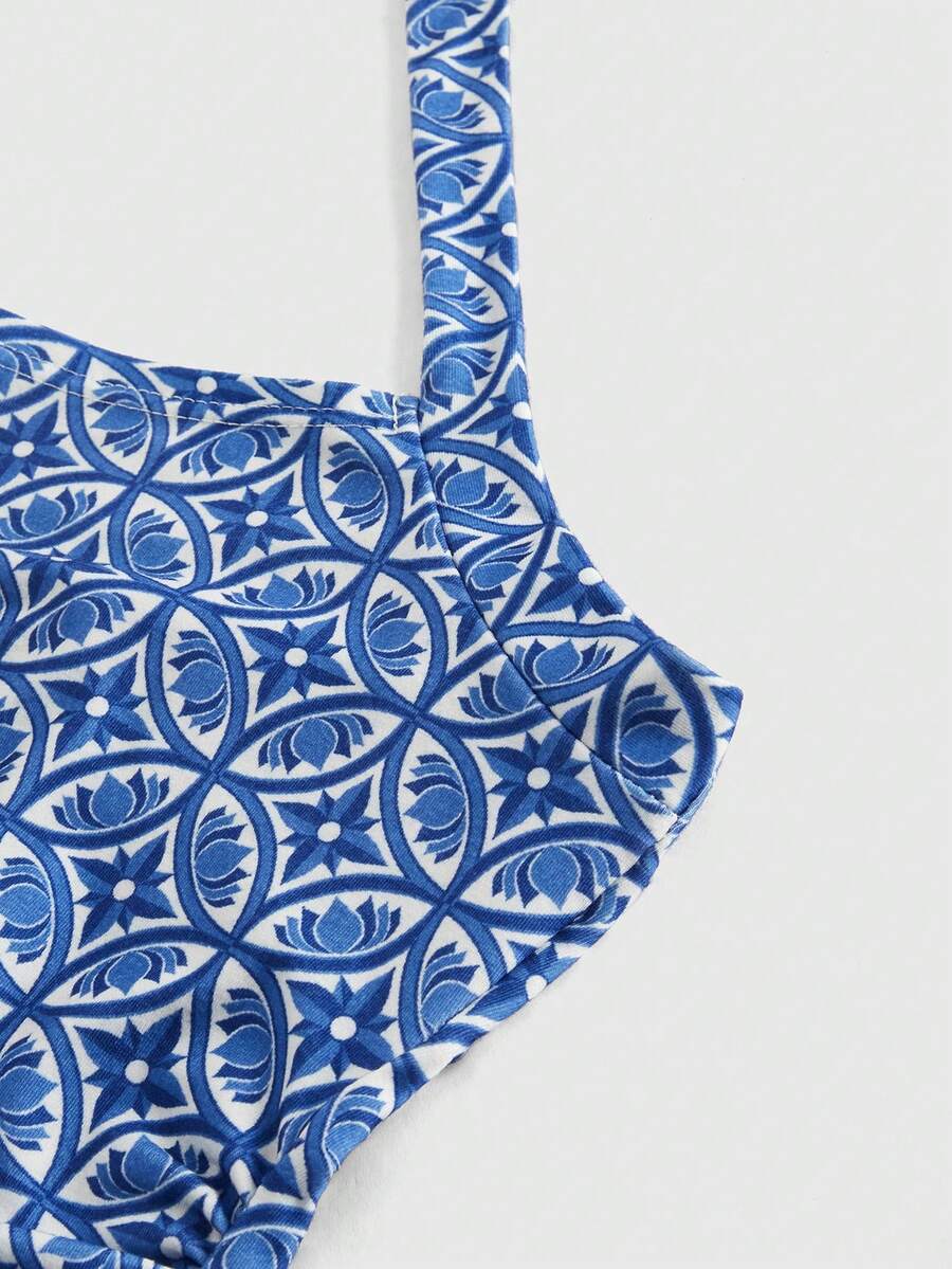 The White Lotus Women All-Over Print Backless Halter Top, Slim Fit For Summer