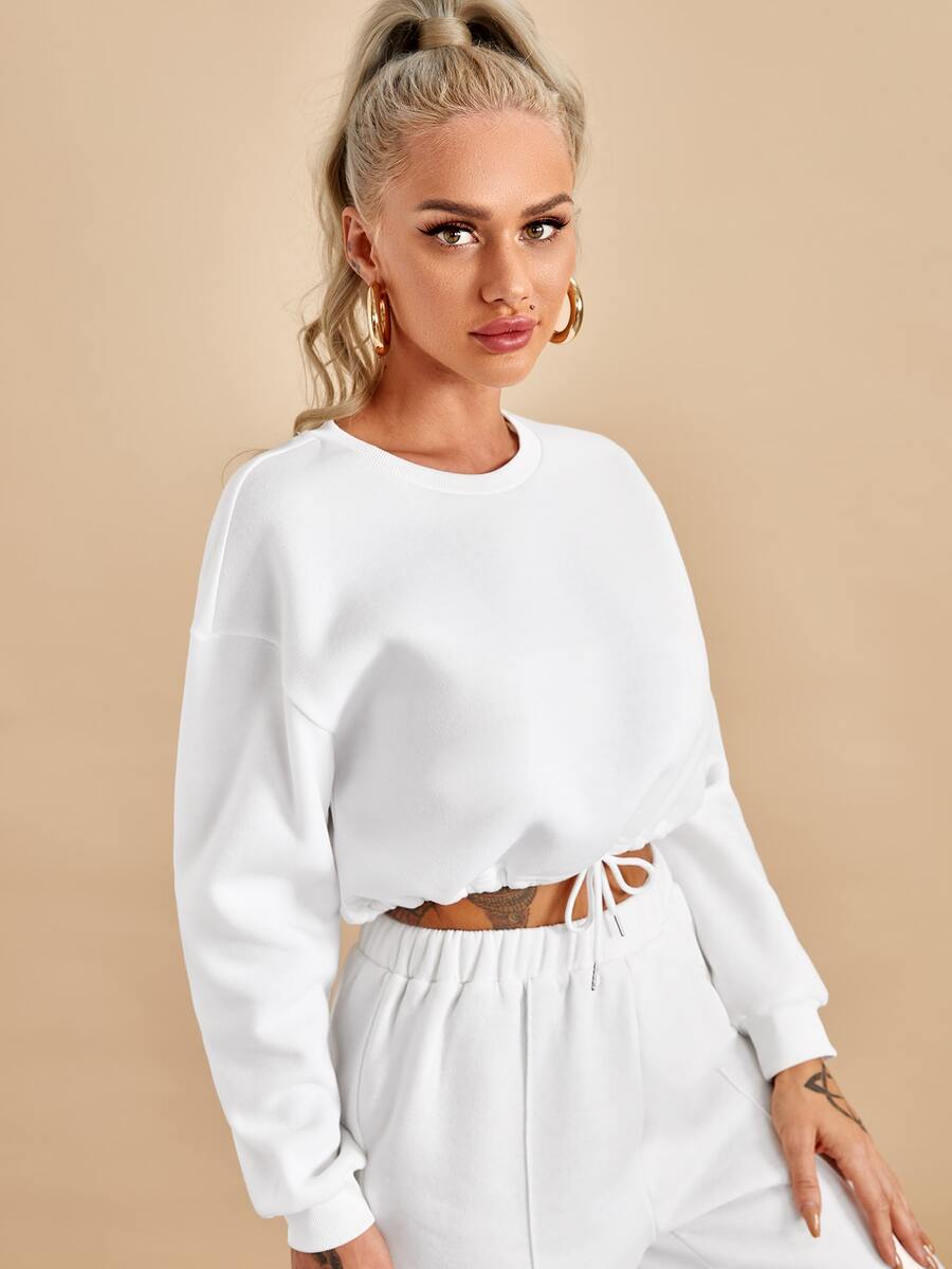 Thermal Lined Drawstring Hem Crop Sweatshirt