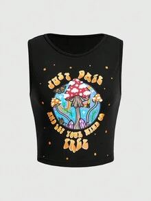 ThisUniqueVibe Mushroom & Slogan Graphic Tank Top