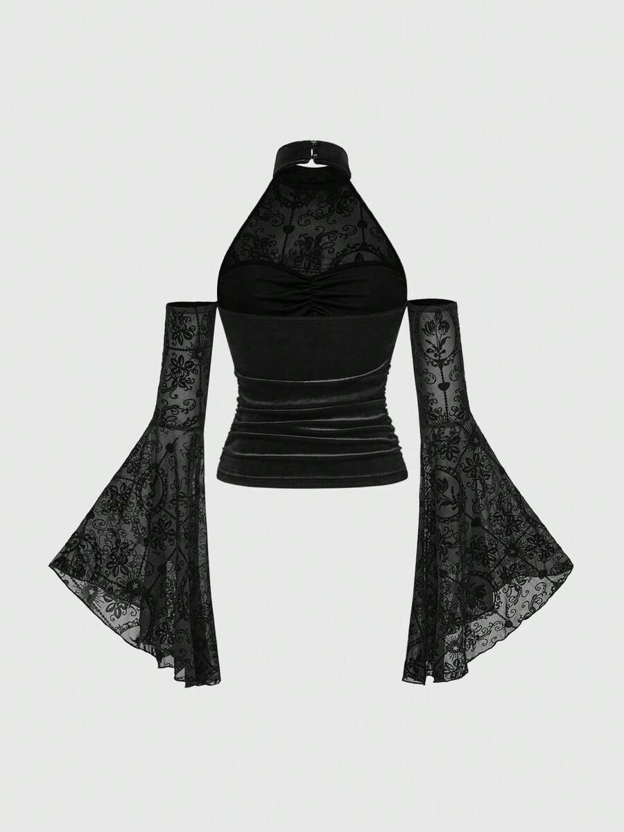 Vintage Retro Sexy Gothic Cross Pendant Solid Color Elastic Long Sleeve Women T-Shirt