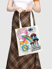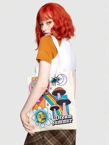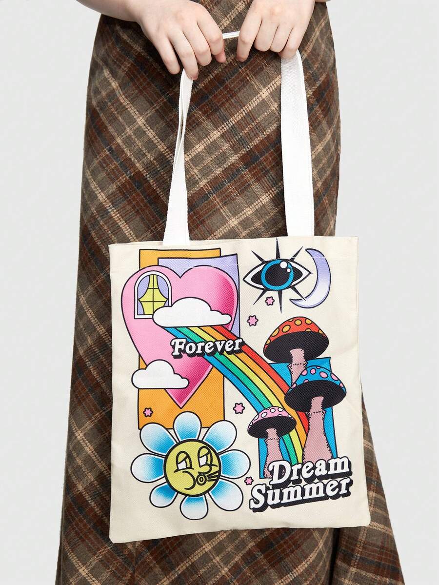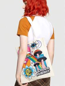 Heymoonly Creative Hippie Style Mushroom & Heart Print Double-Sided Shoulder Canvas Bag Mushroombag,Novelty Bag, Perfect Best Gag & Funny Gifts.