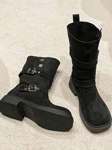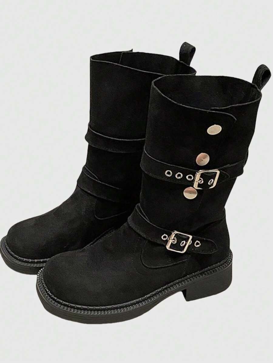 Goth Women's Button Embellish Metal Decor Simple Casual Ankle Boots