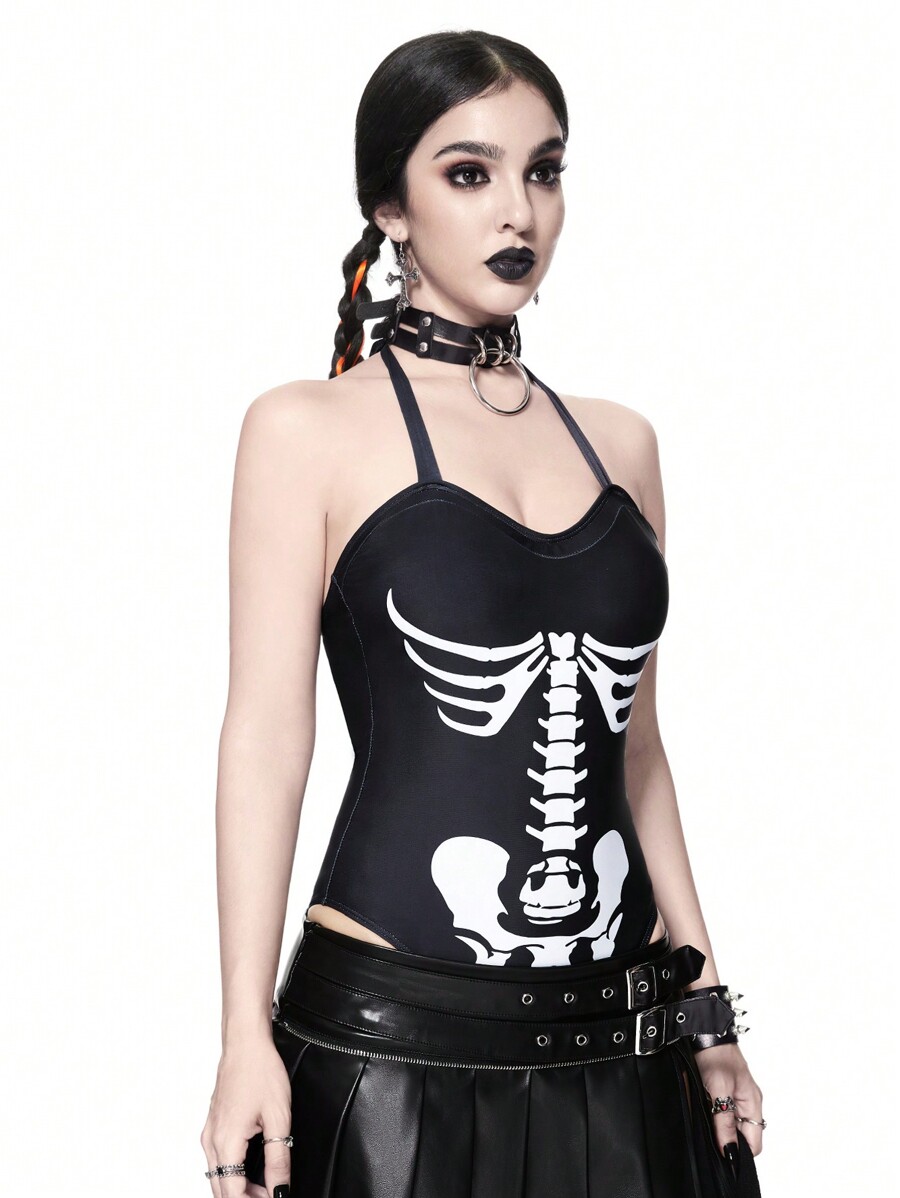 Goth Women's All-In-One Skeleton Bones Costume For Halloween Summer