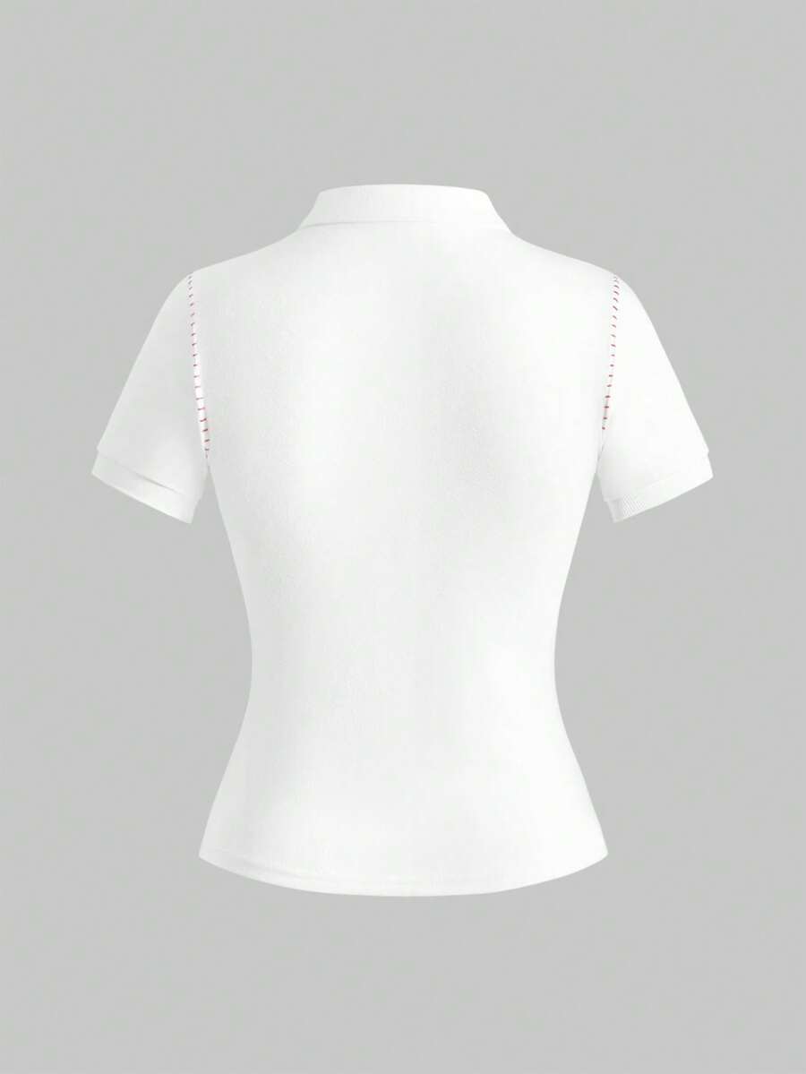 ROMWE Avant Women's Vintage Retro Logo Slogan Print Sexy Polo Collar Top