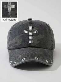 Goth 1 Women's Solid Color Cross Hot Drill Air Eye Baseball Cap Outdoor Adjustable Cap