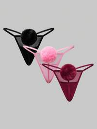 Kawaii 3pcs/Set Sexy Bunny Tail Pom Pom Thong Panties