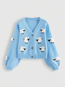 Kawaii Women Cute 3D Sheep Embroidered Pure Cardigan, Blue