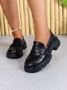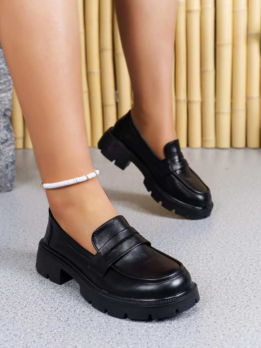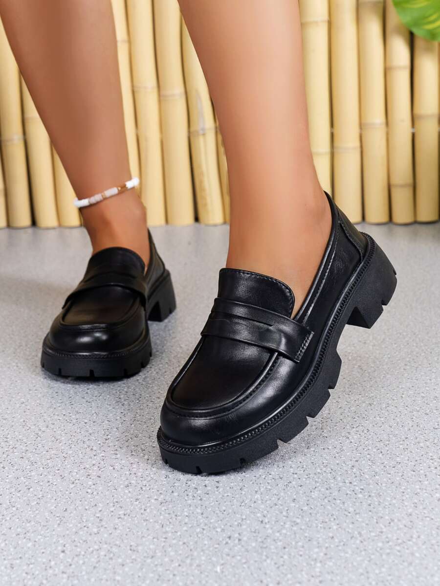 Women Loafers Artificial Leather Elegant Flatform Shoes Black