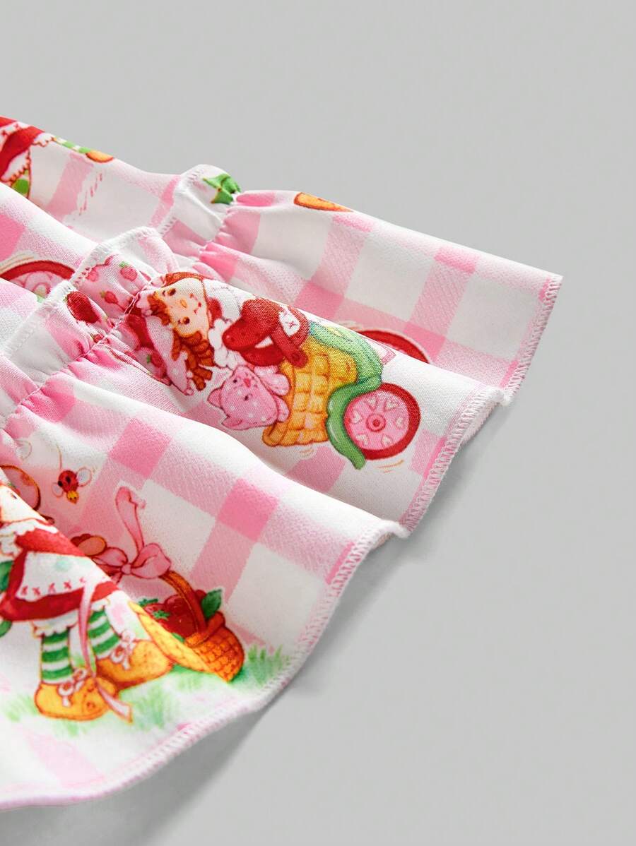 Women Plaid Strawberry Print Ruffle Hem Mini Skirt