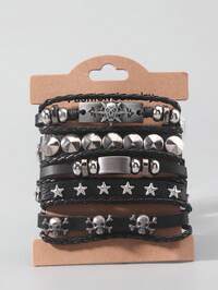 Grunge Punk 5 Pieces/Set, Punk Fashion Personalized Skeleton, Stars, Metal, Multi-Layer Hand-Woven Pattern Men's Bracelet, Women's Bracelet, Preferred Gift.