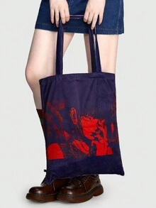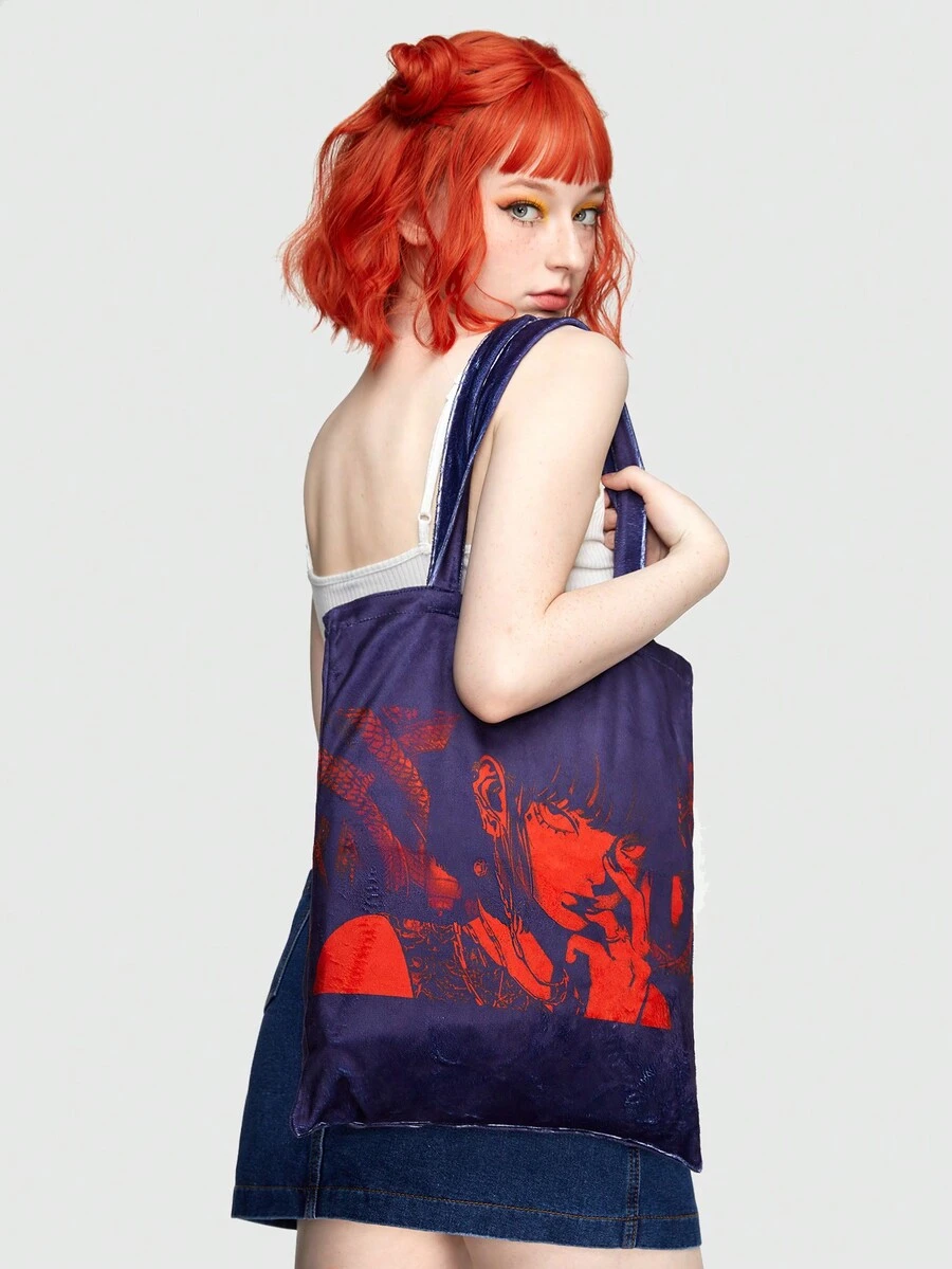 Wtfsylvia Anime Patterned Black Shopping Bag, Women's Tote