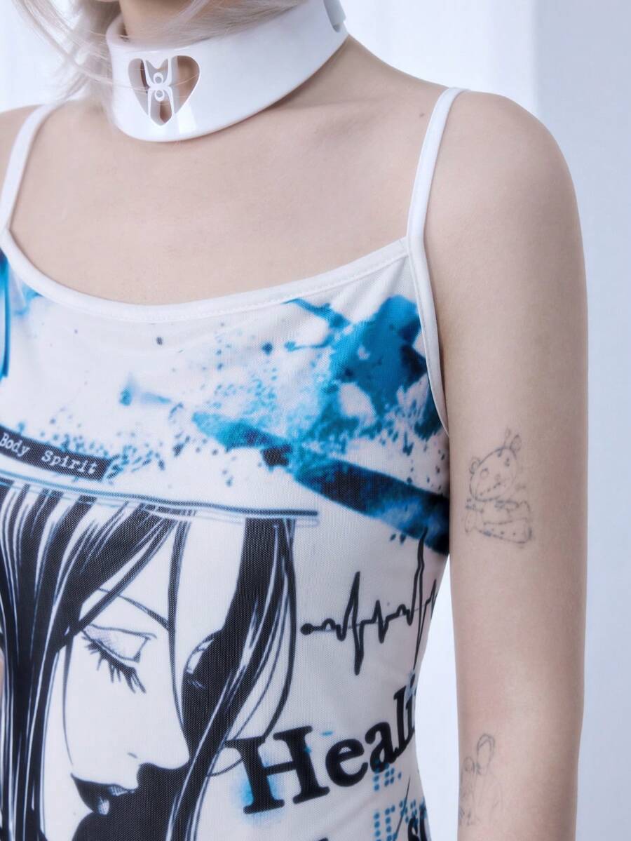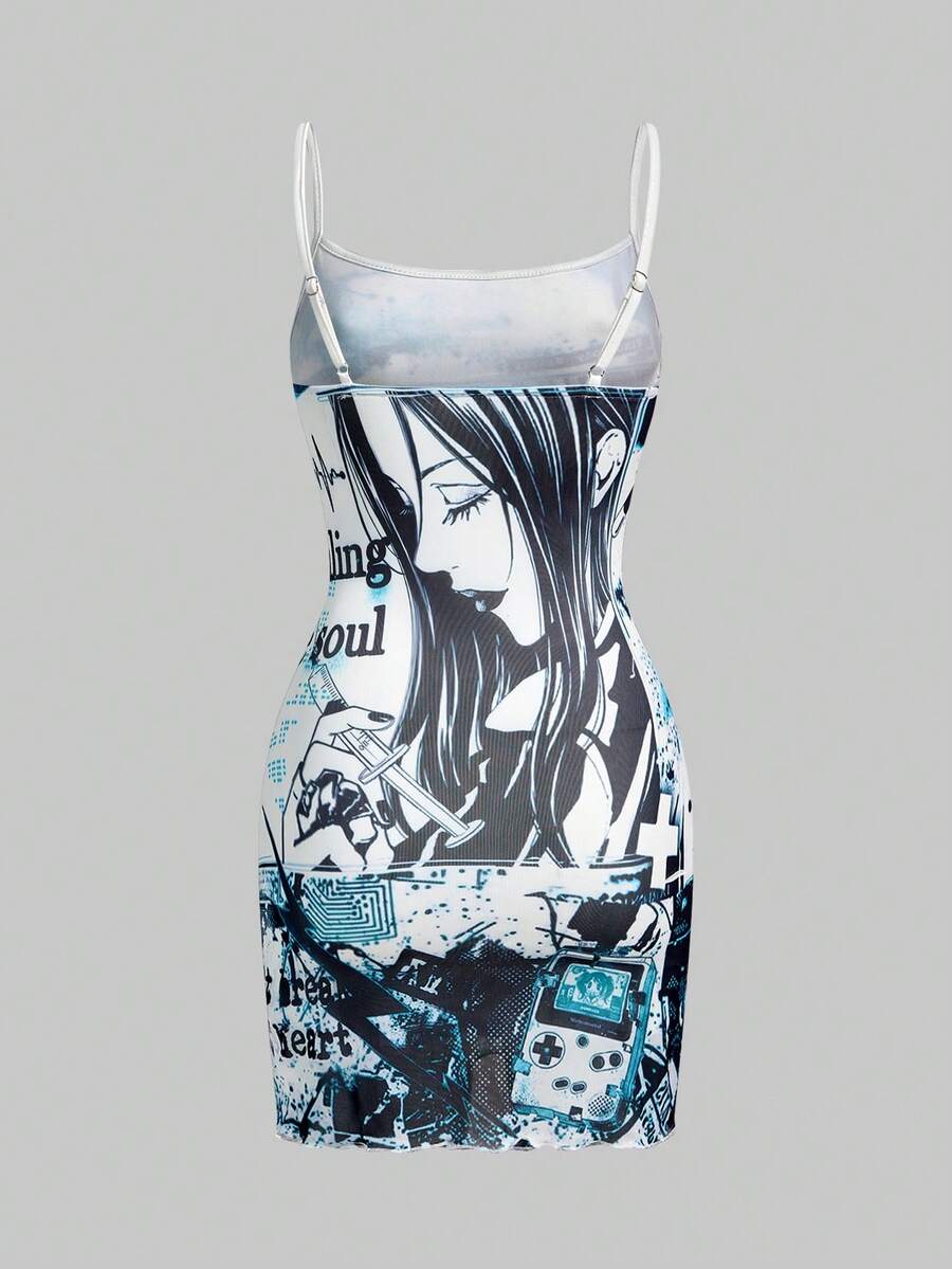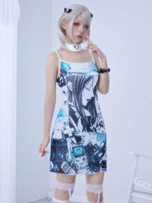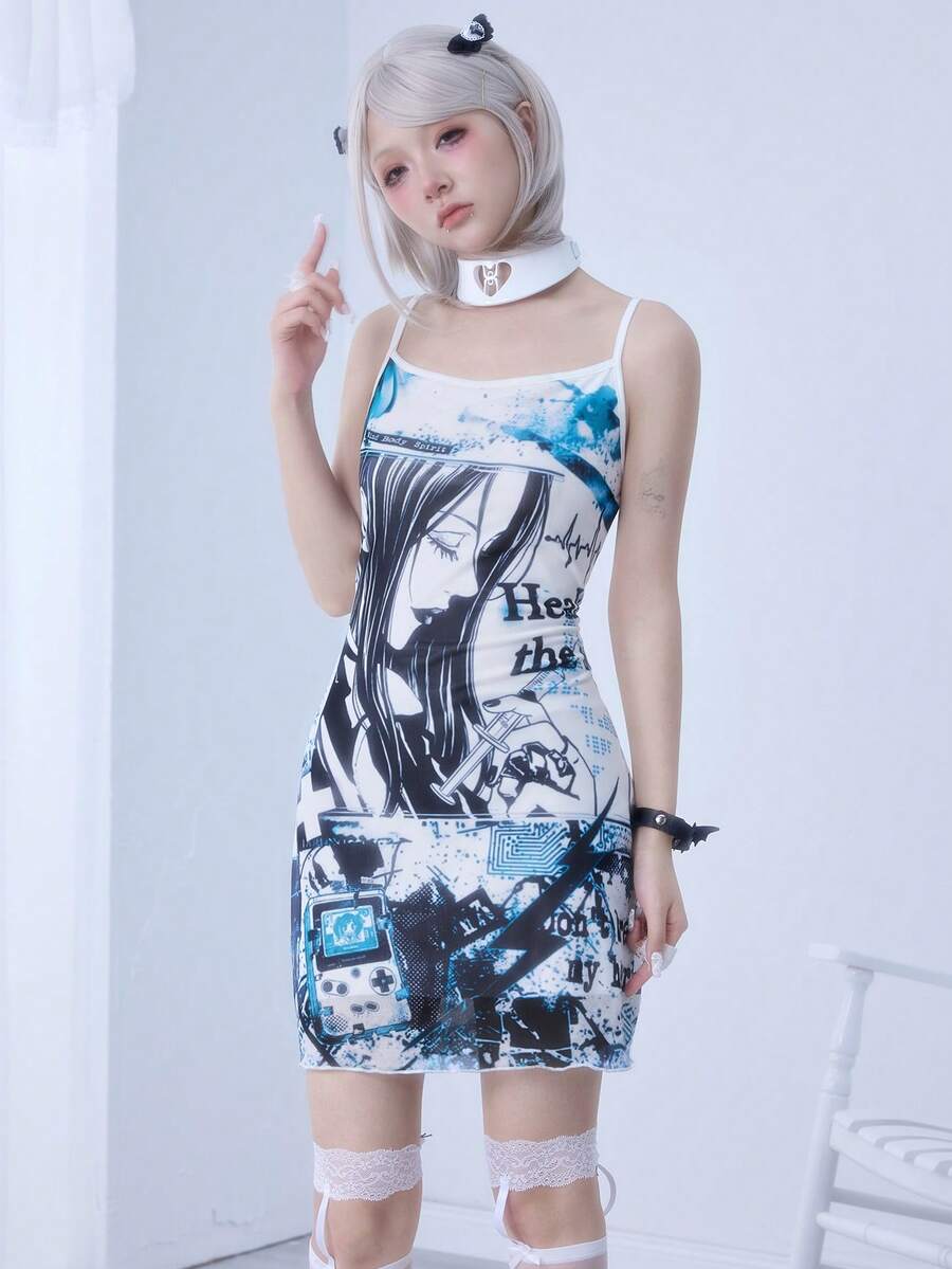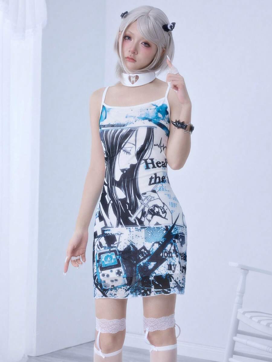 Y2K Anime Medical Syringe Pill Game Print Mini Dress For Women