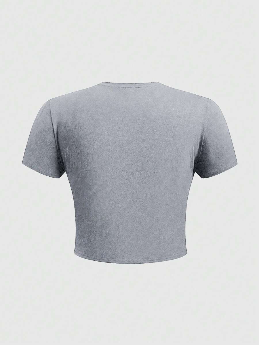 Grunge Punk Y2K Dark Mysterious Spider Eye Slogan Print Crew Neck Fitted Waist Gray T-Shirt, Plus Size Kpop Women