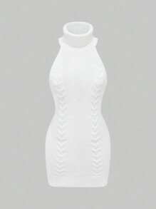 J-Fashion Y2K Shibuya Girl Ribbed Backless Bodycon Mini Dress Sweater, Beige