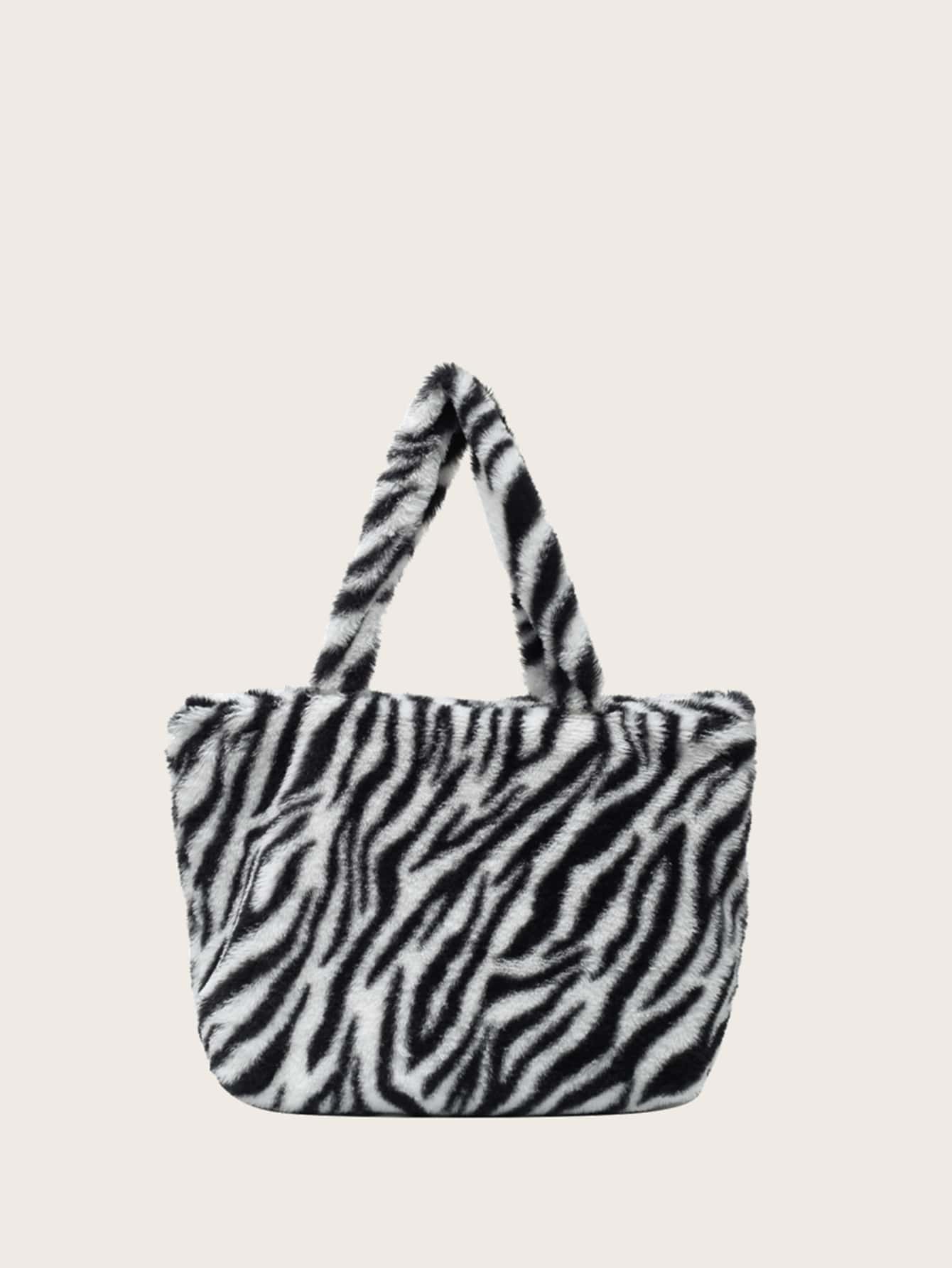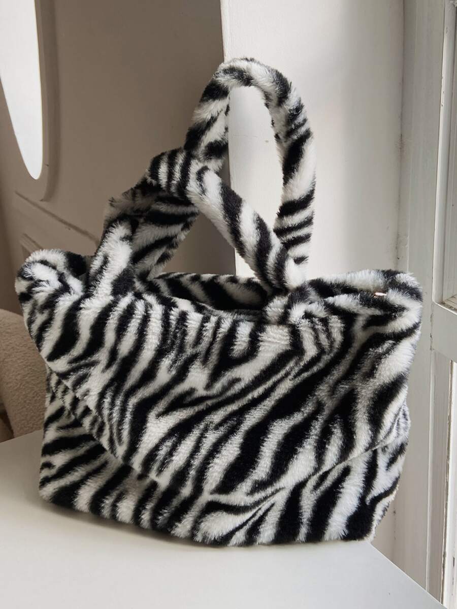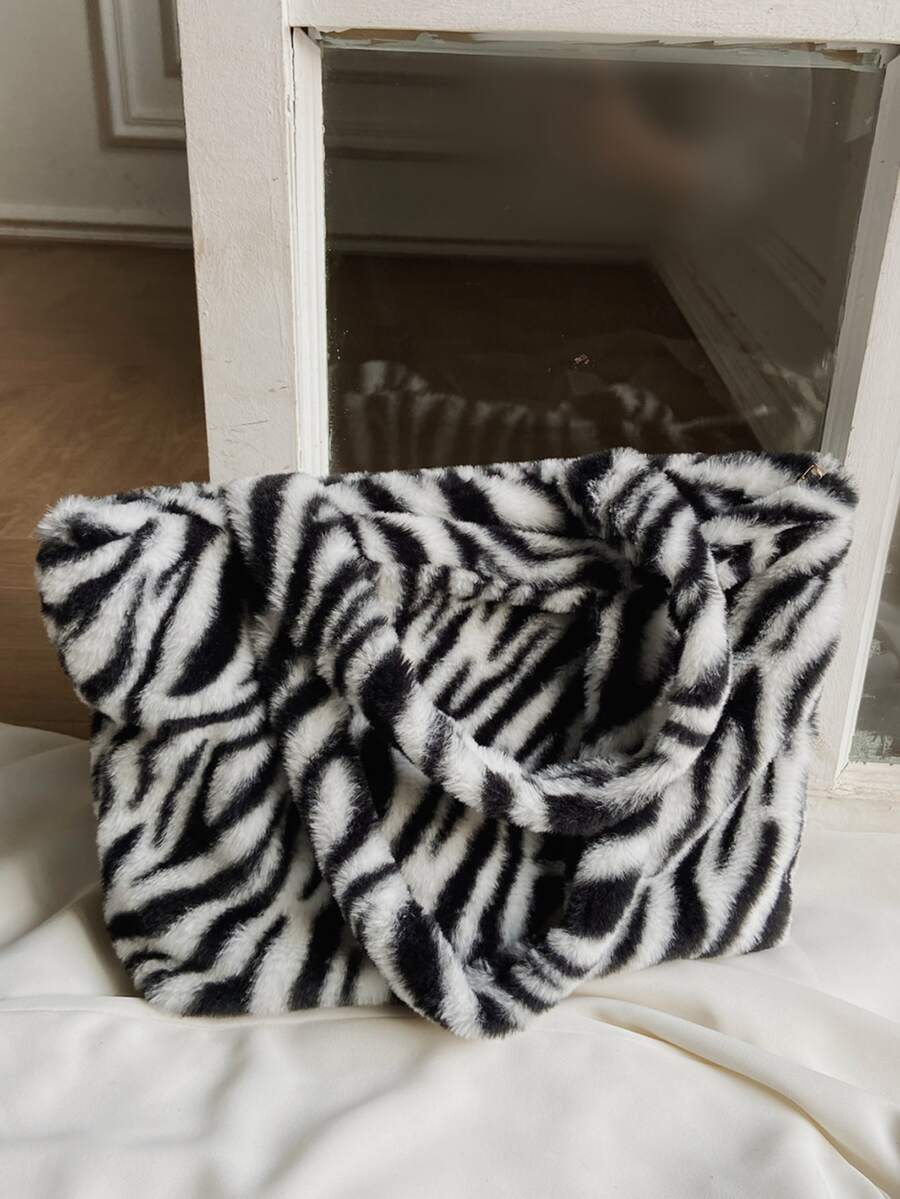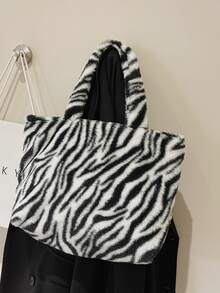 Zebra Striped Pattern Fluffy Shoulder Tote Bag